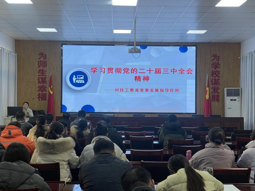 按照支部年度学习计划,2024年12月27日,支部在党员活动室组织召开第四季度党课教育,支部书记姜林丽为全体党员讲授了题为“学习贯彻党的二十届三中全会精神—对技工教育变革发展指导作用”的专题党课,会议由支部副书记李云玲主持。