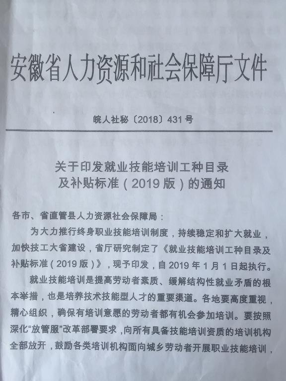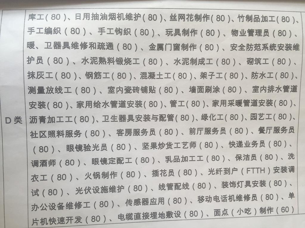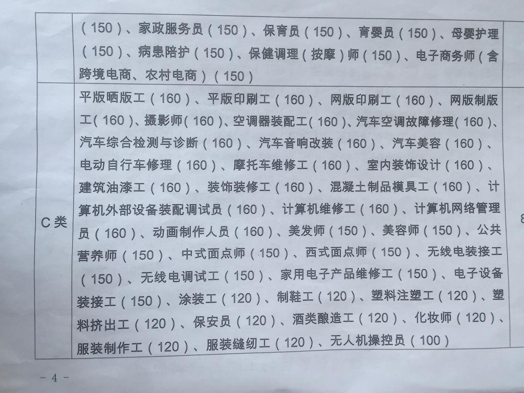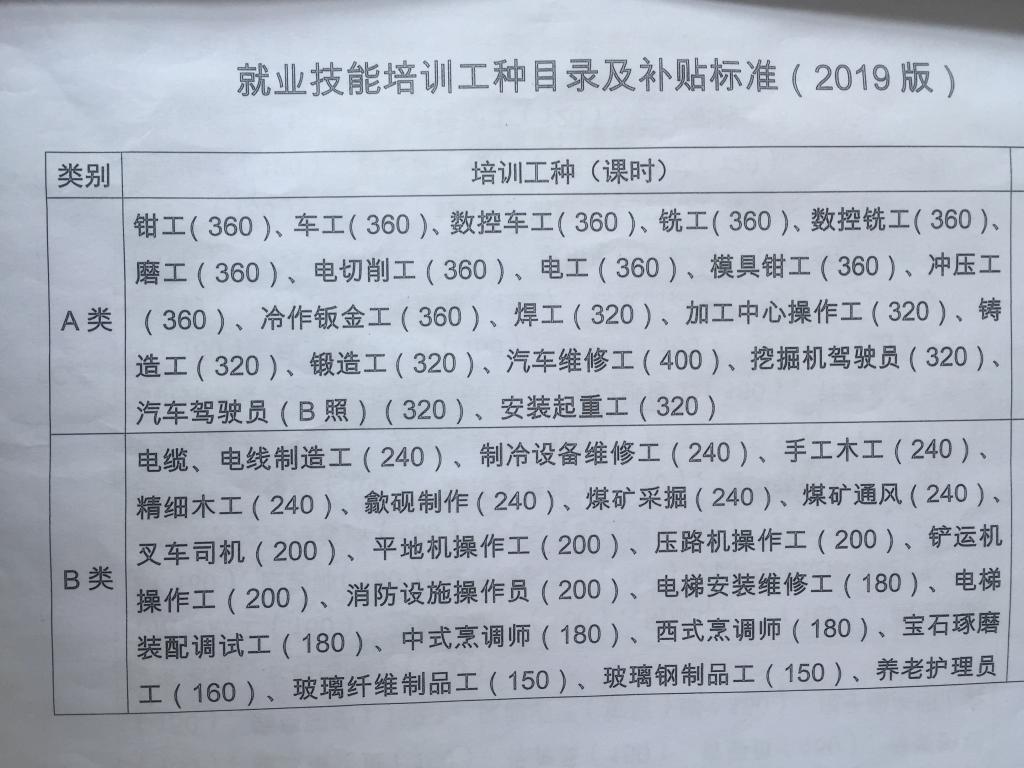 关于印发就业技能培训工种目录及补贴标准的通知