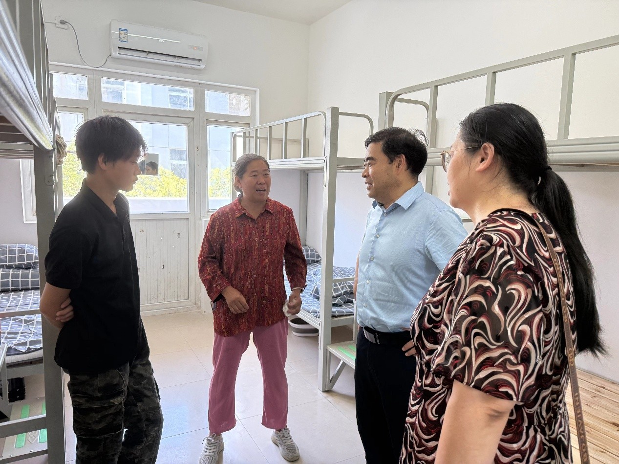 报到当天,胡道成校长带队深入各宿舍楼,与新生及家长亲切交流。“宿舍住得还习惯吗?”“有困难随时找老师”,每到一间宿舍,胡校长都仔细查看居住环境,倾听新生需求,叮嘱大家尽快适应校园生活,在新学期找准目标、不负韶华。